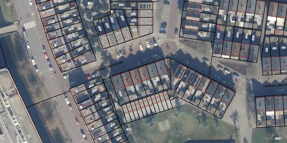 William Sternstraat 32 is gelegen op kadastraal perceel HLM02X1018. Deze kadastrale aanduiding is uniek en wordt gebruikt door het Kadaster om eigendomsrechten en andere zakelijke rechten vast te leggen. Het perceel maakt onderdeel uit van de kadastrale gemeente Haarlem.