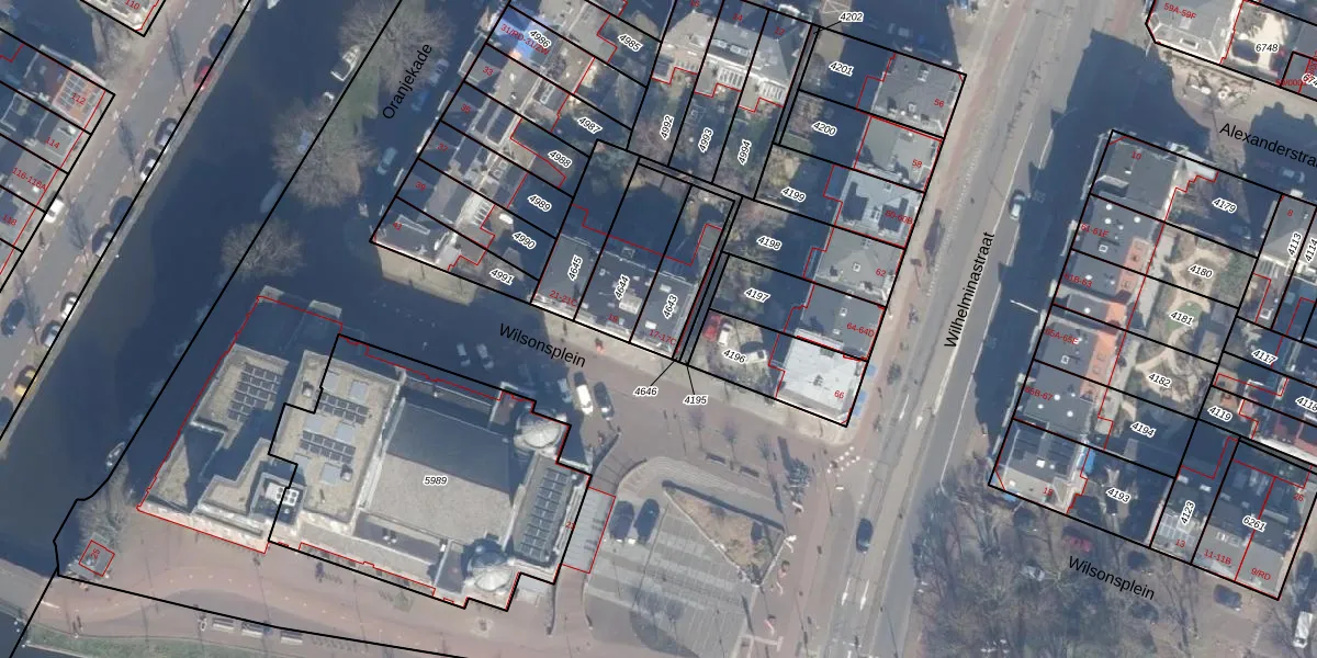 Het perceel waarop Wilsonsplein 17 staat heeft een oppervlakte van 182 m². Dit is een middelgroot perceel. De perceeloppervlakte wordt geregistreerd door het Kadaster. Gedetailleerde informatie over de maten van dit perceel kunt u vinden in het rapport Kadastrale kaart met maatvoering van Wilsonsplein 17.