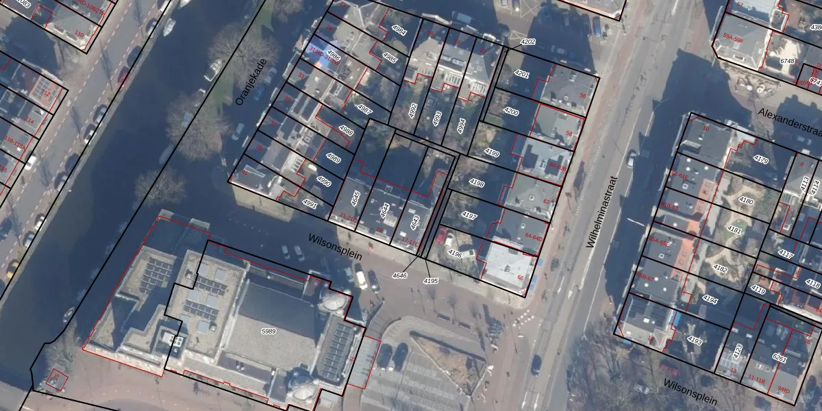 Het perceel waarop Wilsonsplein 17-F staat heeft een oppervlakte van 182 m². Dit is een middelgroot perceel. De perceeloppervlakte wordt geregistreerd door het Kadaster. Gedetailleerde informatie over de maten van dit perceel kunt u vinden in het rapport Kadastrale kaart met maatvoering van Wilsonsplein 17-F.