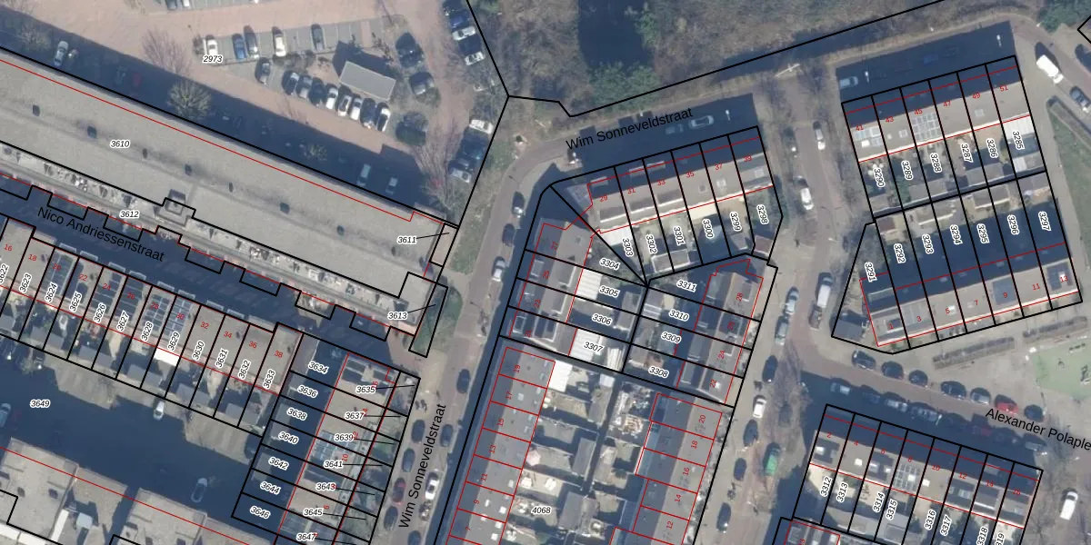 Wim Sonneveldstraat 25 is gelegen op kadastraal perceel HLM02P3305. Deze kadastrale aanduiding is uniek en wordt gebruikt door het Kadaster om eigendomsrechten en andere zakelijke rechten vast te leggen. Het perceel maakt onderdeel uit van de kadastrale gemeente Haarlem.