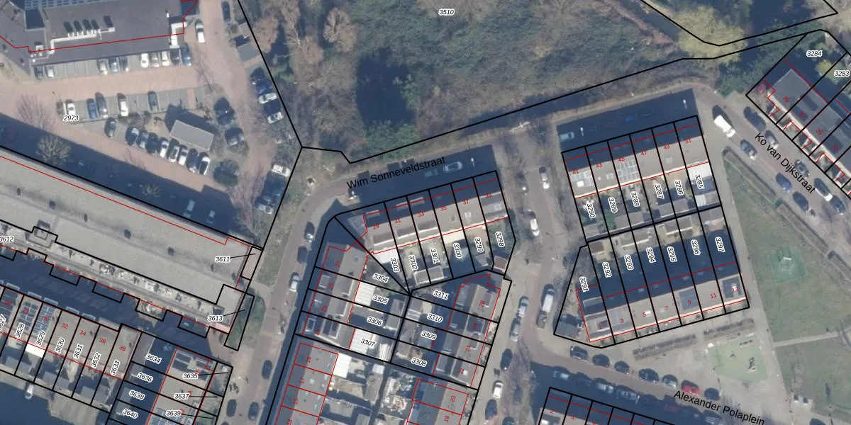 Wim Sonneveldstraat 33 is gelegen op kadastraal perceel HLM02P3301. Deze kadastrale aanduiding is uniek en wordt gebruikt door het Kadaster om eigendomsrechten en andere zakelijke rechten vast te leggen. Het perceel maakt onderdeel uit van de kadastrale gemeente Haarlem.
