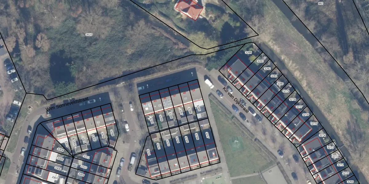 Gebruik de zoekbalk of klik op een perceel voor informatie over de adressen binnen dit perceel.