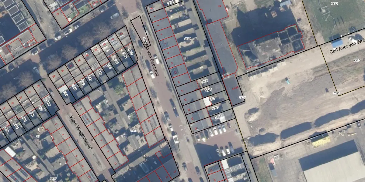 Wim van Eststraat 17 is gelegen op kadastraal perceel HLM01E6559. Deze kadastrale aanduiding is uniek en wordt gebruikt door het Kadaster om eigendomsrechten en andere zakelijke rechten vast te leggen. Het perceel maakt onderdeel uit van de kadastrale gemeente Haarlem.