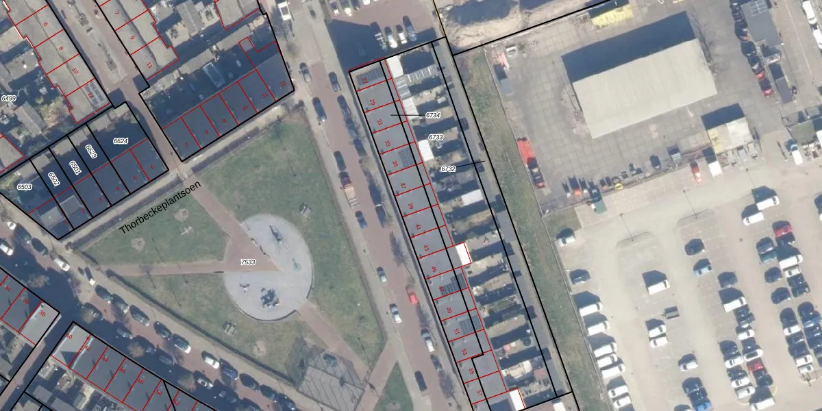 Het perceel waarop Wim van Eststraat 39 staat heeft een oppervlakte van 623 m². Dit is een groot perceel. De perceeloppervlakte wordt geregistreerd door het Kadaster. Gedetailleerde informatie over de maten van dit perceel kunt u vinden in het rapport Kadastrale kaart met maatvoering van Wim van Eststraat 39.