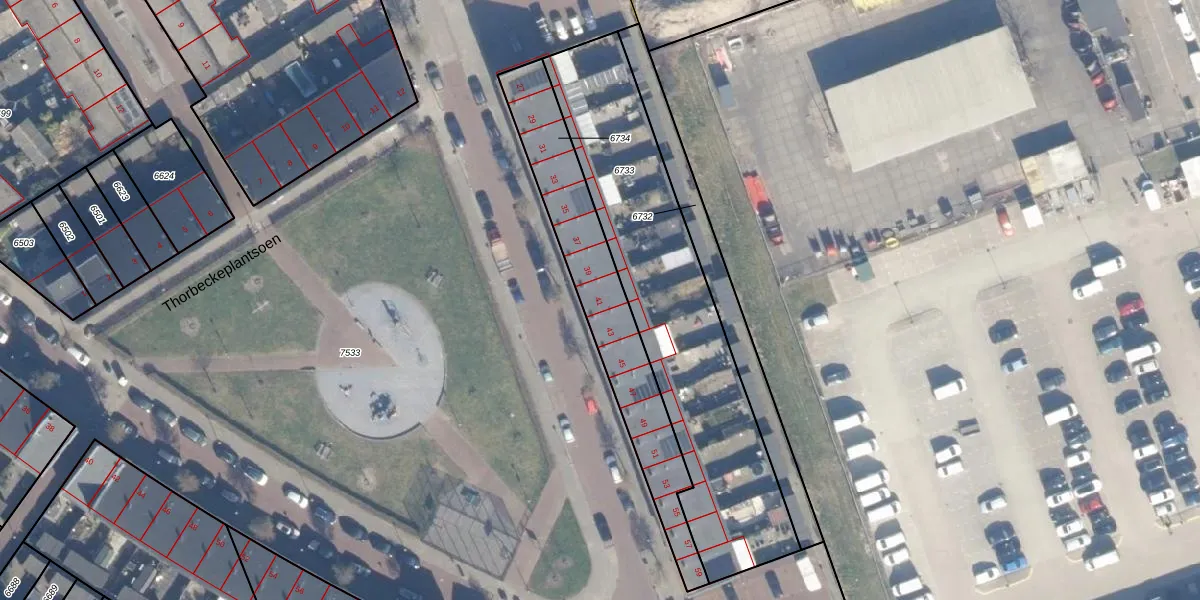 Het perceel waarop Wim van Eststraat 41 staat heeft een oppervlakte van 623 m². Dit is een groot perceel. De perceeloppervlakte wordt geregistreerd door het Kadaster. Gedetailleerde informatie over de maten van dit perceel kunt u vinden in het rapport Kadastrale kaart met maatvoering van Wim van Eststraat 41.