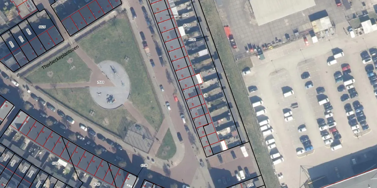 Het perceel waarop Wim van Eststraat 47 staat heeft een oppervlakte van 623 m². Dit is een groot perceel. De perceeloppervlakte wordt geregistreerd door het Kadaster. Gedetailleerde informatie over de maten van dit perceel kunt u vinden in het rapport Kadastrale kaart met maatvoering van Wim van Eststraat 47.
