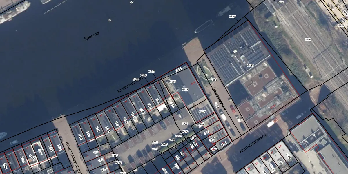 Het perceel waarop het adres ligt is HLM01-E-7318. De afkorting 'HLM01' staat voor kadastrale gemeente Haarlem. De gemiddelde perceeloppervlakte in de kadastrale gemeente Haarlem is 328,17 m². Dit perceel is met zijn 361 m² dus groter dan gemiddeld. De grootste perceeloppervlakte in de kadastrale gemeente is 13,9 ha. De kleinste oppervlakte bedraagt 0 m². Op het perceel liggen in totaal 10 adressen. De huidige grenzen van het perceel zijn digitaal in de Basisregistratie Kadaster (BRK) geregistreerd op 23-11-2020.