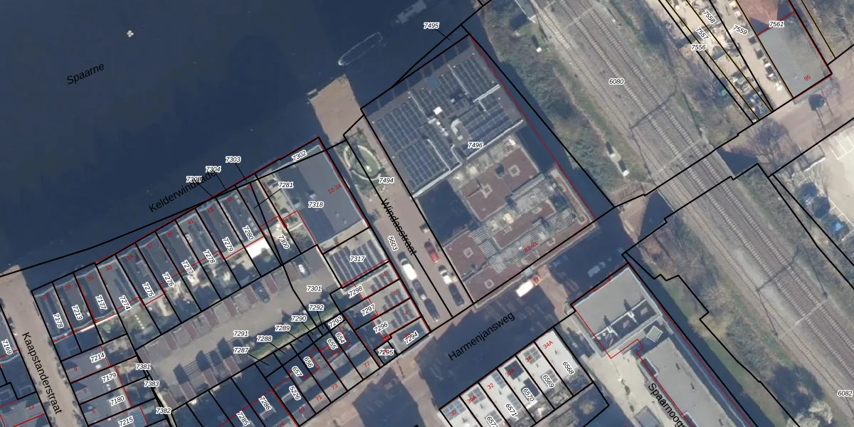 Het perceel waarop het adres ligt is HLM01-E-7496. De afkorting 'HLM01' staat voor kadastrale gemeente Haarlem. De oppervlakte van het perceel is 1843 m². Dat is groter dan gemiddeld in Haarlem, waar de gemiddelde perceeloppervlakte op 328,17 m² ligt. De grootste perceeloppervlakte in de kadastrale gemeente is 13,9 ha. De kleinste oppervlakte bedraagt 0 m². Op het perceel zijn 56 adressen aanwezig. In de Basisregistratie Kadaster (BRK) werden de grenzen van het perceel geregistreerd op 23-11-2020.