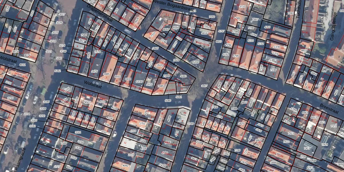 Het perceel waarop Wolstraat 19-RD staat heeft een oppervlakte van 43 m². Dit is een klein perceel. De perceeloppervlakte wordt geregistreerd door het Kadaster. Gedetailleerde informatie over de maten van dit perceel kunt u vinden in het rapport Kadastrale kaart met maatvoering van Wolstraat 19-RD.