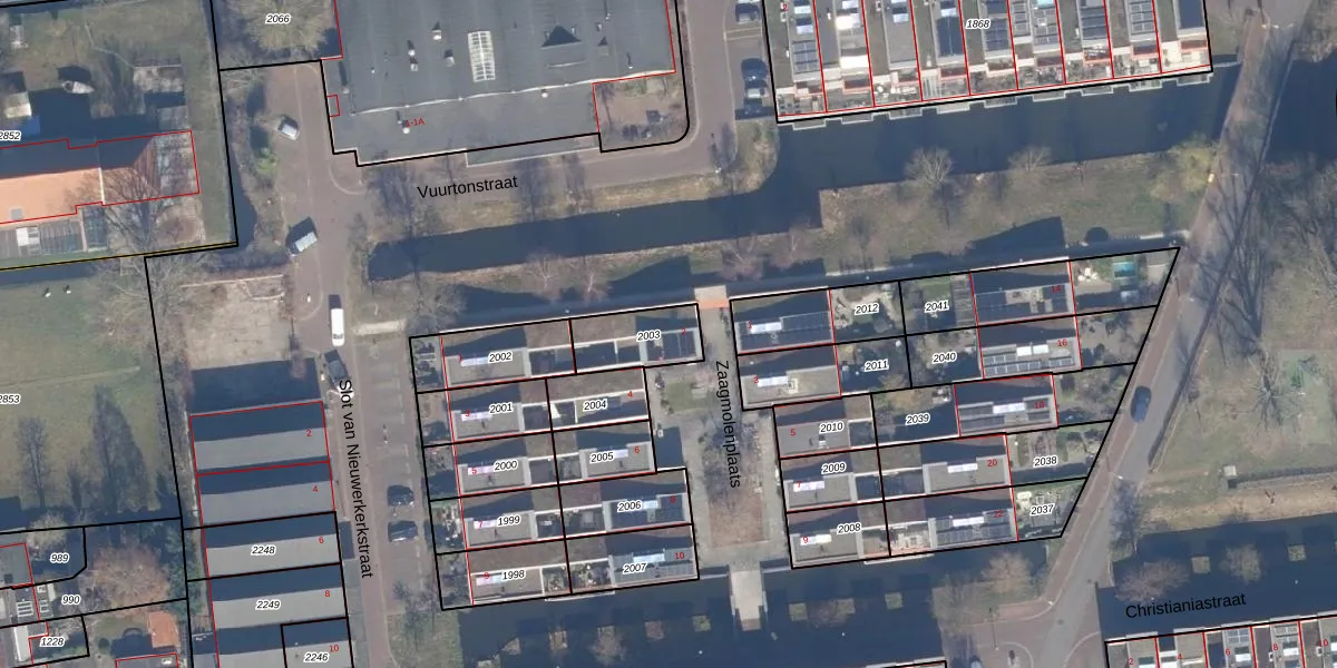 Gebruik de zoekbalk of klik op een perceel voor informatie over de adressen binnen dit perceel.