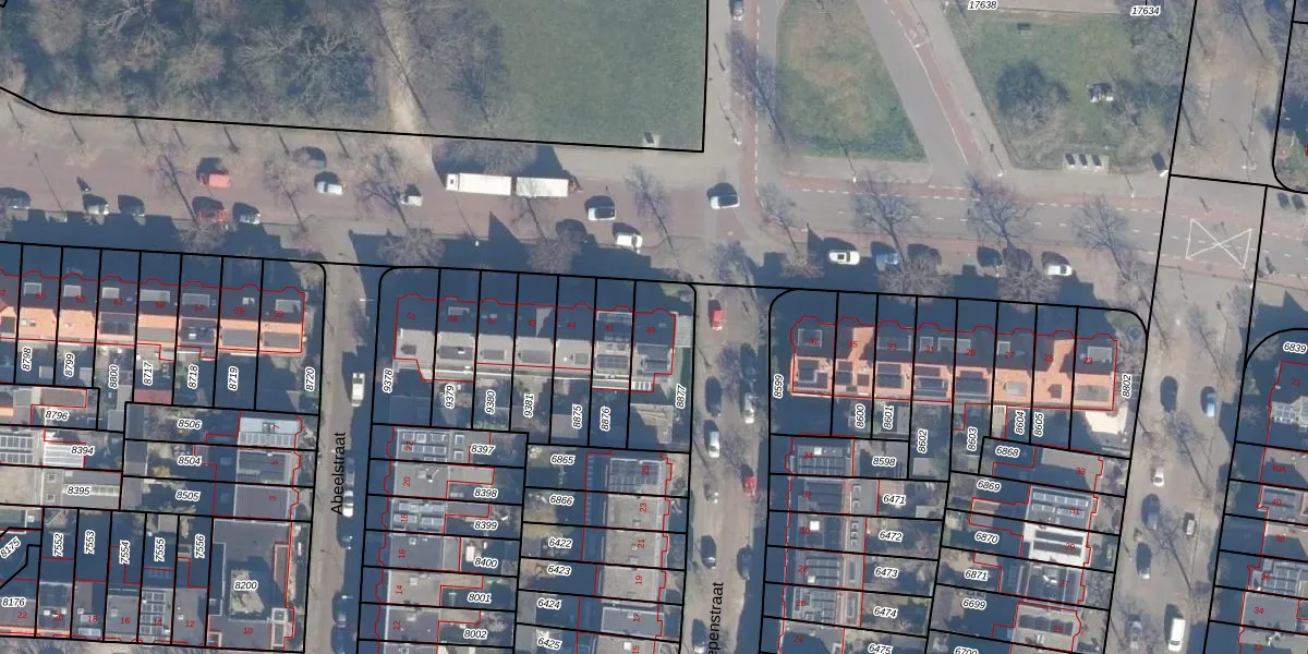 Gebruik de zoekbalk of klik op een perceel voor informatie over de adressen binnen dit perceel.