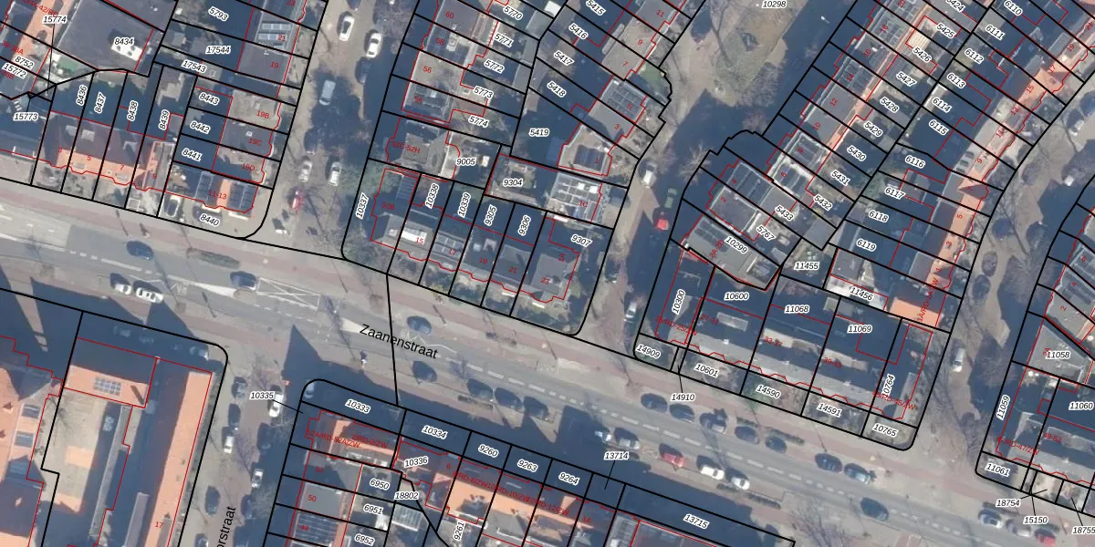 Zaanenstraat 23 is gelegen op kadastraal perceel STN01B9307. Deze kadastrale aanduiding is uniek en wordt gebruikt door het Kadaster om eigendomsrechten en andere zakelijke rechten vast te leggen. Het perceel maakt onderdeel uit van de kadastrale gemeente Schoten.