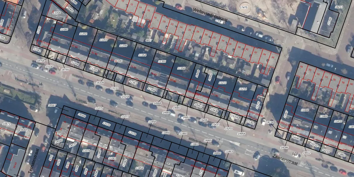 Zaanenstraat 87 is gelegen op kadastraal perceel STN01B11356. Deze kadastrale aanduiding is uniek en wordt gebruikt door het Kadaster om eigendomsrechten en andere zakelijke rechten vast te leggen. Het perceel maakt onderdeel uit van de kadastrale gemeente Schoten.