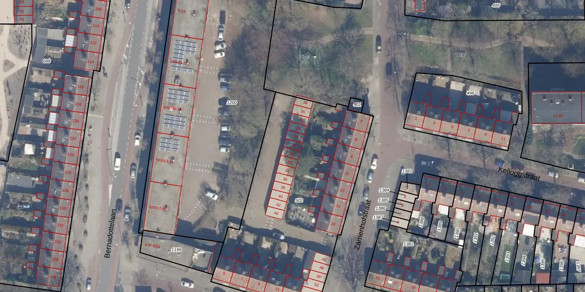 Het perceel waarop Zamenhofstraat 28 staat heeft een oppervlakte van 2376 m². Dit is een zeer groot perceel. De perceeloppervlakte wordt geregistreerd door het Kadaster. Gedetailleerde informatie over de maten van dit perceel kunt u vinden in het rapport Kadastrale kaart met maatvoering van Zamenhofstraat 28.