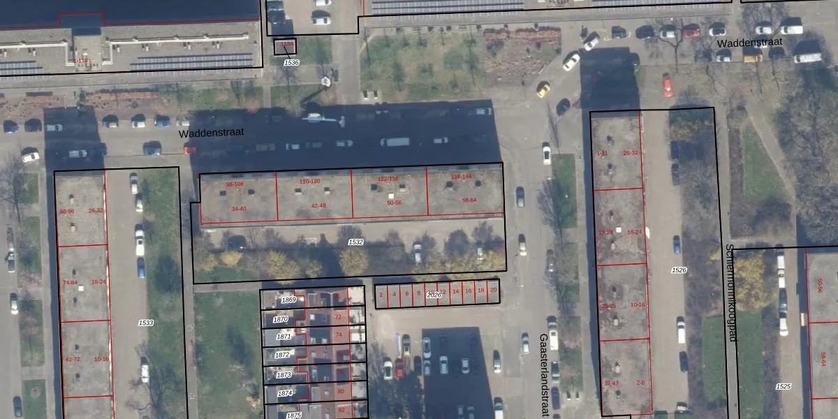 Het perceel waarop het adres ligt is HLM02-Y-1532. De afkorting 'HLM02' staat voor kadastrale gemeente Haarlem. Het perceel is met 1941 m² relatief groot. Het gemiddelde ligt in de kadastrale gemeente Haarlem op 1123,97 m². Het kleinste perceel in de kadastrale gemeente is 0 m² groot. De grootste perceeloppervlakte is 46,4 ha. Op het perceel zijn 40 adressen aanwezig. De huidige grenzen van het perceel zijn digitaal in de Basisregistratie Kadaster (BRK) geregistreerd op 06-02-2002.