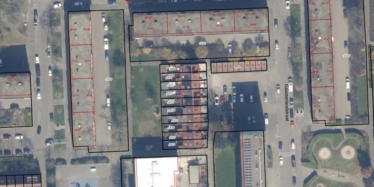 Het perceel waarop het adres ligt is HLM02-Y-1872. De afkorting 'HLM02' staat voor kadastrale gemeente Haarlem. De gemiddelde perceelgrootte in Haarlem is 1124,37 m². Dit perceel is kleiner: de perceeloppervlakte bedraagt 112 m². Het kleinste perceel in de kadastrale gemeente is 0 m² groot. De grootste perceeloppervlakte is 46,4 ha. Er zijn geen andere adressen aanwezig op het perceel. In de Basisregistratie Kadaster (BRK) werden de grenzen van het perceel geregistreerd op 06-02-2002.