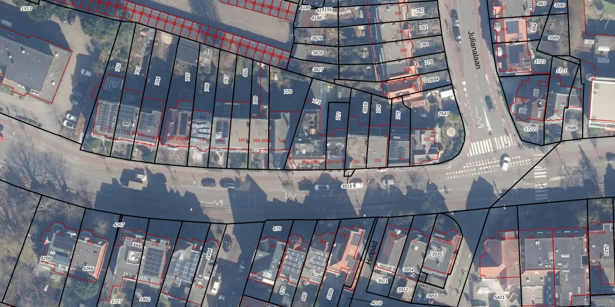 Het adres ligt op het perceel HLM02-T-771, dat zich in de kadastrale gemeente Haarlem bevindt. De gemiddelde perceelgrootte in Haarlem is 1125,79 m². Dit perceel is kleiner: de perceeloppervlakte bedraagt 290 m². Het kleinste perceel in de kadastrale gemeente is 0 m² groot. De grootste perceeloppervlakte is 46,4 ha. Op het perceel zijn 4 adressen aanwezig. De huidige grenzen van het perceel zijn digitaal in de Basisregistratie Kadaster (BRK) geregistreerd op 05-09-2001.