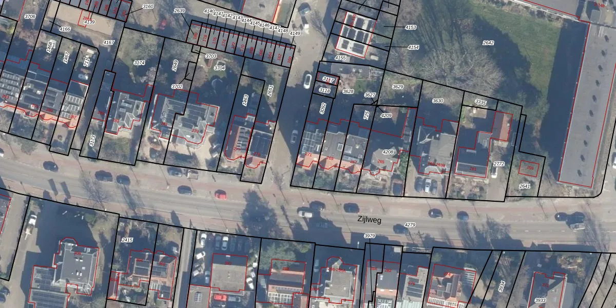 Gebruik de zoekbalk of klik op een perceel voor informatie over de adressen binnen dit perceel.