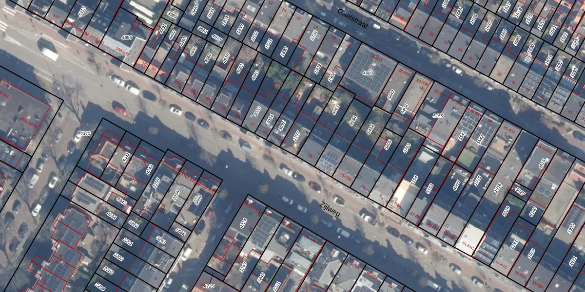 Het perceel waarop Zijlweg 81 staat heeft een oppervlakte van 163 m². Dit is een middelgroot perceel. De perceeloppervlakte wordt geregistreerd door het Kadaster. Gedetailleerde informatie over de maten van dit perceel kunt u vinden in het rapport Kadastrale kaart met maatvoering van Zijlweg 81.