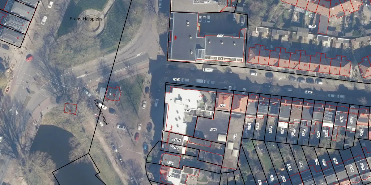Het perceel waarop het adres ligt is HLM01-G-3666. De afkorting 'HLM01' staat voor kadastrale gemeente Haarlem. De oppervlakte van het perceel is 615 m². Dat is groter dan gemiddeld in Haarlem, waar de gemiddelde perceeloppervlakte op 328,37 m² ligt. Het grootste perceel in de kadastrale gemeente is 13,9 ha. Het kleinste perceel heeft een oppervlakte van 0 m². Op het perceel zijn 16 adressen aanwezig. In de Basisregistratie Kadaster (BRK) werden de grenzen van het perceel geregistreerd op 15-07-2020.