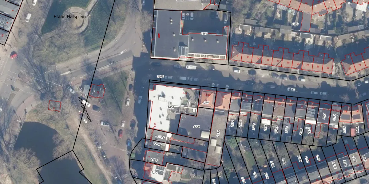 Het perceel waarop het adres ligt is HLM01-G-3666. De afkorting 'HLM01' staat voor kadastrale gemeente Haarlem. De oppervlakte van het perceel is 615 m². Dat is groter dan gemiddeld in Haarlem, waar de gemiddelde perceeloppervlakte op 328,37 m² ligt. Het grootste perceel in de kadastrale gemeente is 13,9 ha. Het kleinste perceel heeft een oppervlakte van 0 m². Op het perceel liggen in totaal 16 adressen. De huidige grenzen van het perceel zijn digitaal in de Basisregistratie Kadaster (BRK) geregistreerd op 15-07-2020.
