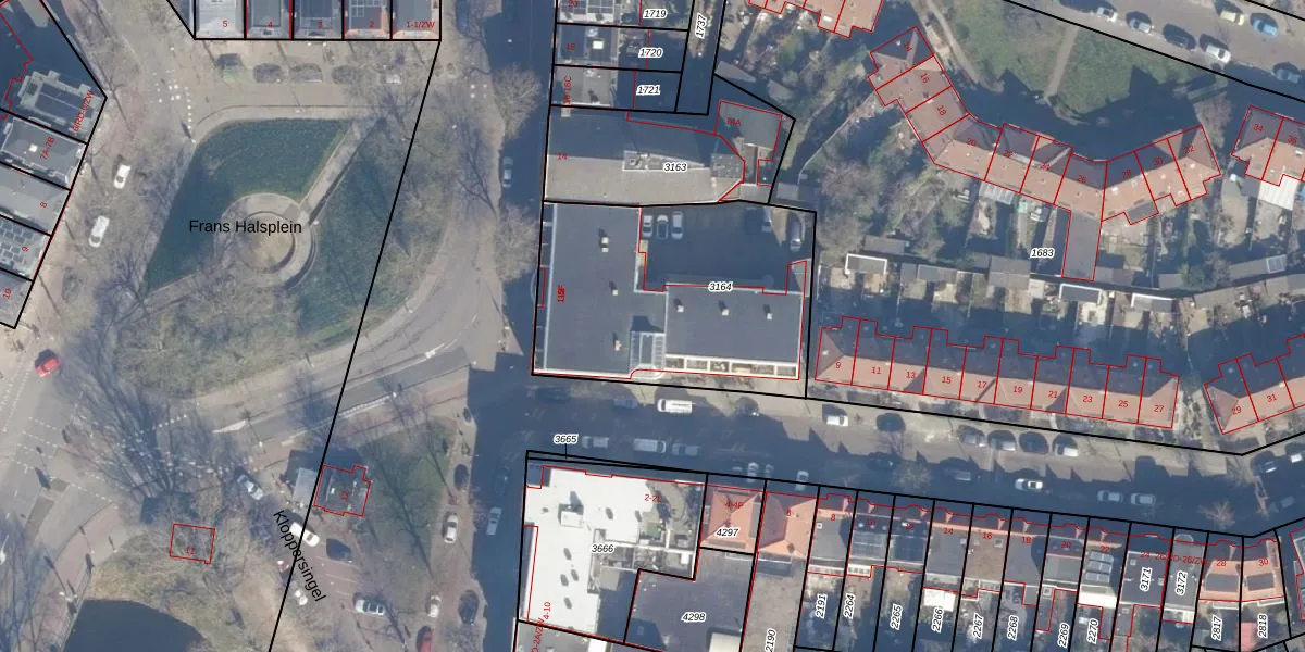 Het perceel waarop het adres ligt is HLM01-G-3164. De afkorting 'HLM01' staat voor kadastrale gemeente Haarlem. De oppervlakte van het perceel is 1153 m². Dat is groter dan gemiddeld in Haarlem, waar de gemiddelde perceeloppervlakte op 328,33 m² ligt. Het grootste perceel in de kadastrale gemeente is 13,9 ha. Het kleinste perceel heeft een oppervlakte van 0 m². Er zijn 22 adressen aanwezig op het perceel. In de Basisregistratie Kadaster (BRK) werden de grenzen van het perceel geregistreerd op 16-10-2001.
