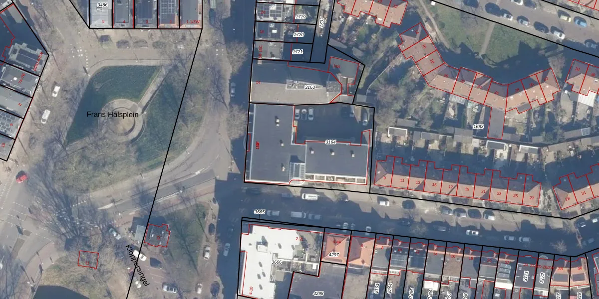 Het perceel waarop het adres ligt is HLM01-G-3164. De afkorting 'HLM01' staat voor kadastrale gemeente Haarlem. De oppervlakte van het perceel is 1153 m². Dat is groter dan gemiddeld in Haarlem, waar de gemiddelde perceeloppervlakte op 328,33 m² ligt. Het grootste perceel in de kadastrale gemeente is 13,9 ha. Het kleinste perceel heeft een oppervlakte van 0 m². Er zijn 22 adressen aanwezig op het perceel. De laatste wijziging in het de Basisregistratie Kadaster (BRK) was op 16-10-2001.