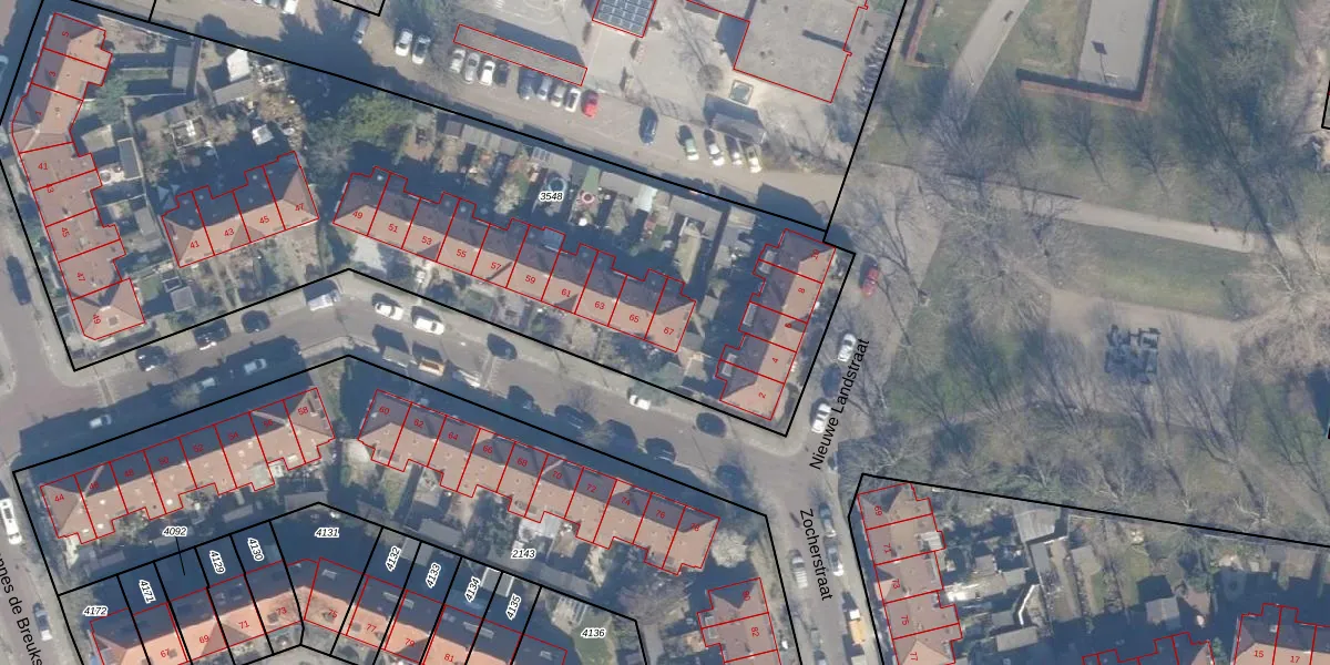 Het perceel waarop Zocherstraat 67 staat heeft een oppervlakte van 4338 m². Dit is een zeer groot perceel. De perceeloppervlakte wordt geregistreerd door het Kadaster. Gedetailleerde informatie over de maten van dit perceel kunt u vinden in het rapport Kadastrale kaart met maatvoering van Zocherstraat 67.