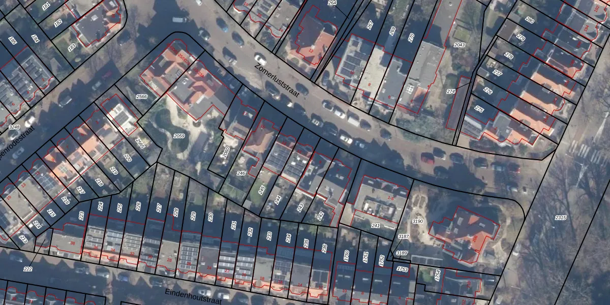 Gebruik de zoekbalk of klik op een perceel voor informatie over de adressen binnen dit perceel.