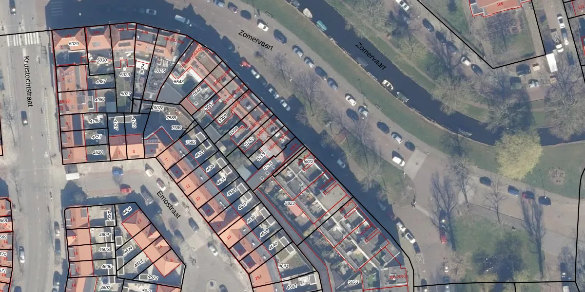 Zomervaart 166-A is gelegen op kadastraal perceel HLM01E5754. Deze kadastrale aanduiding is uniek en wordt gebruikt door het Kadaster om eigendomsrechten en andere zakelijke rechten vast te leggen. Het perceel maakt onderdeel uit van de kadastrale gemeente Haarlem.