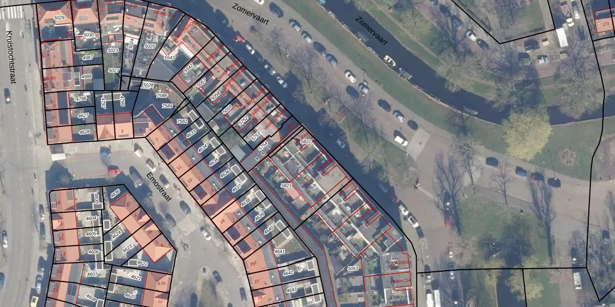 Zomervaart 174 is gelegen op kadastraal perceel HLM01E5823. Deze kadastrale aanduiding is uniek en wordt gebruikt door het Kadaster om eigendomsrechten en andere zakelijke rechten vast te leggen. Het perceel maakt onderdeel uit van de kadastrale gemeente Haarlem.