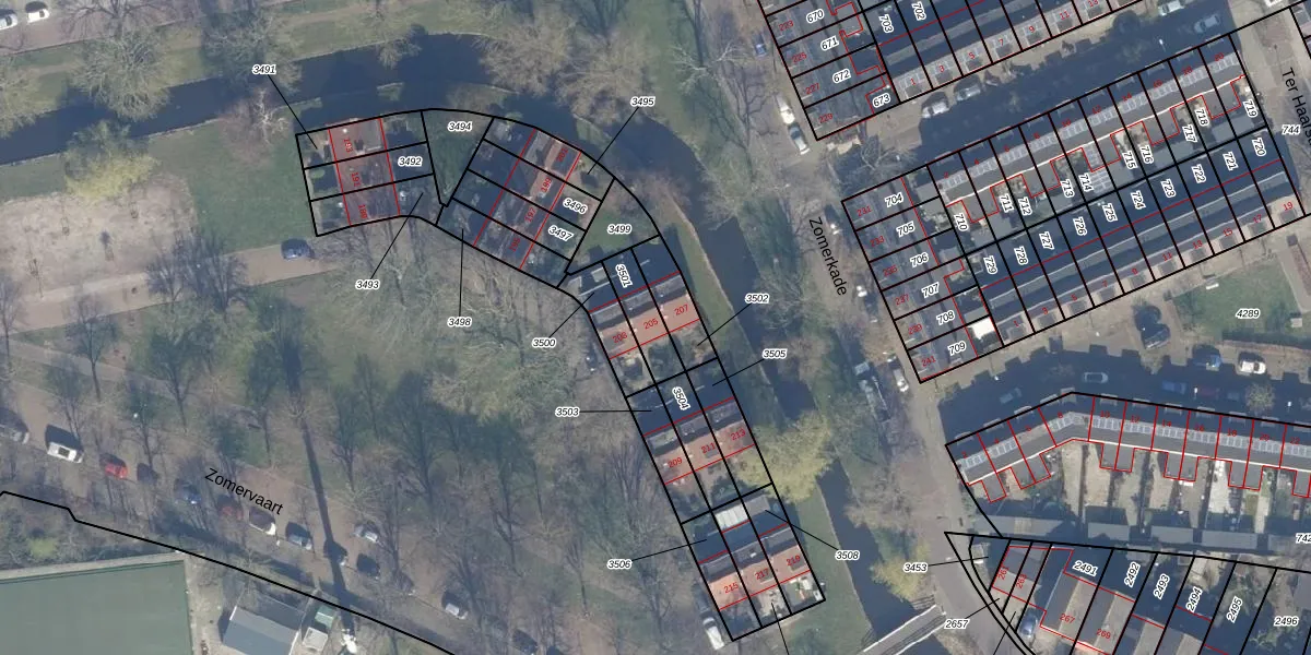 Zomervaart 205 is gelegen op kadastraal perceel HLM02P3501. Deze kadastrale aanduiding is uniek en wordt gebruikt door het Kadaster om eigendomsrechten en andere zakelijke rechten vast te leggen. Het perceel maakt onderdeel uit van de kadastrale gemeente Haarlem.