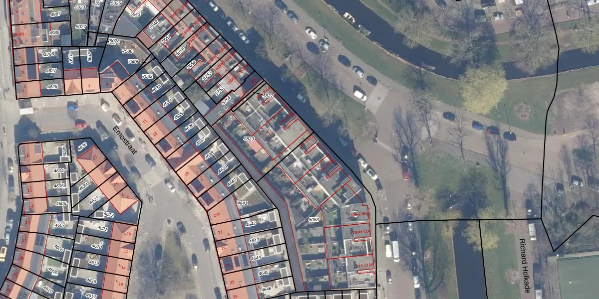 Het perceel waarop het adres ligt is HLM01-E-5053. De afkorting 'HLM01' staat voor kadastrale gemeente Haarlem. De oppervlakte van het perceel is 1413 m². Dat is groter dan gemiddeld in Haarlem, waar de gemiddelde perceeloppervlakte op 328,33 m² ligt. Het kleinste perceel in de kadastrale gemeente is 0 m² groot. De grootste perceeloppervlakte is 13,9 ha. Er zijn 26 adressen aanwezig op het perceel. In de Basisregistratie Kadaster (BRK) werden de grenzen van het perceel geregistreerd op 28-11-1997.