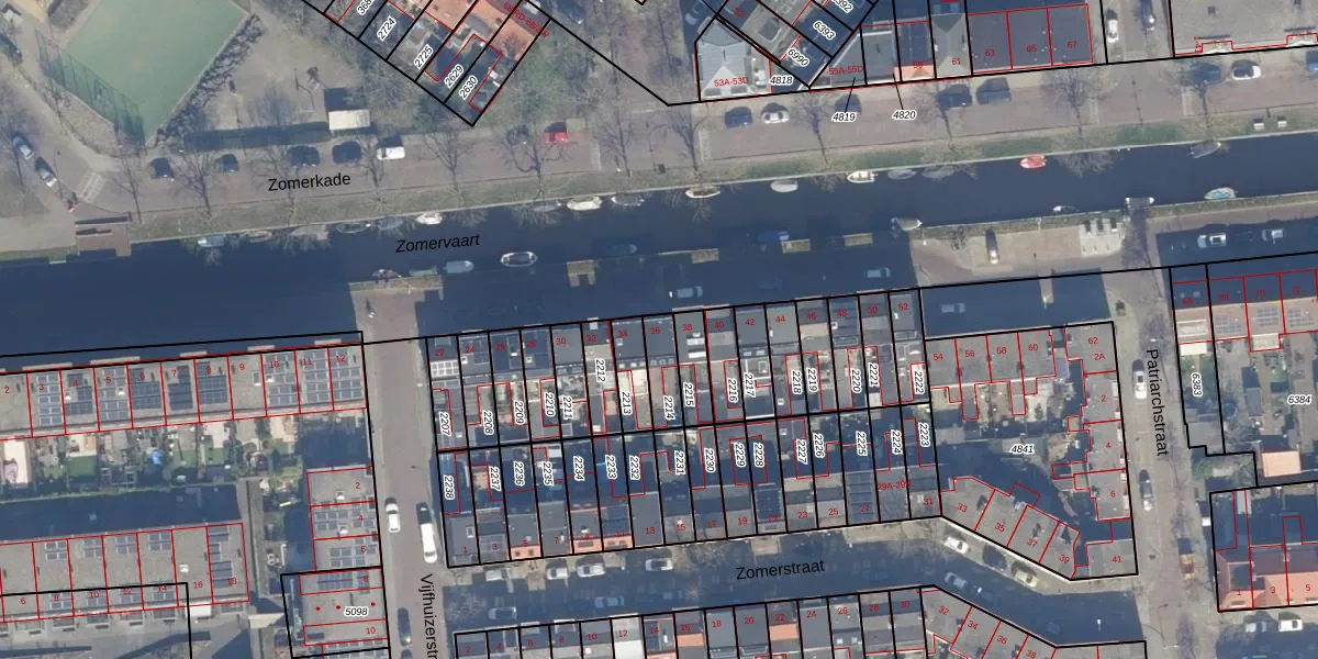 Gebruik de zoekbalk of klik op een perceel voor informatie over de adressen binnen dit perceel.