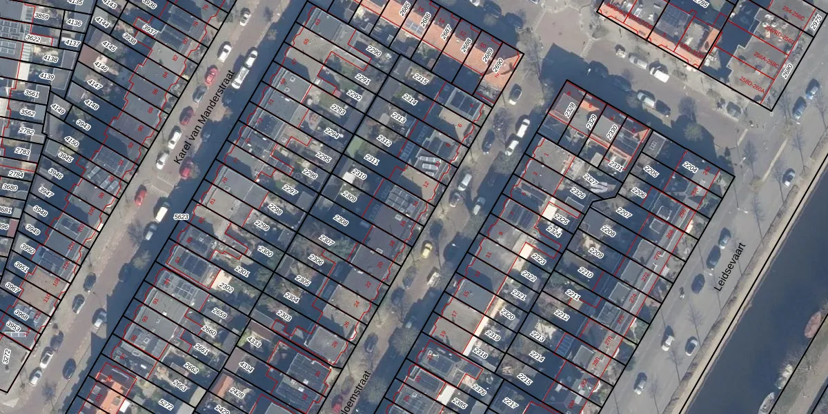 Het perceel waarop het adres ligt is HLM01-I-2310. De afkorting 'HLM01' staat voor kadastrale gemeente Haarlem. Het perceel is 143 m² groot. Dat is kleiner dan de gemiddelde perceeloppervlakte in Haarlem, dat op 328,17 m² ligt. De grootste perceeloppervlakte in de kadastrale gemeente is 13,9 ha. De kleinste oppervlakte bedraagt 0 m². Er zijn geen andere adressen aanwezig op het perceel. In de Basisregistratie Kadaster (BRK) werden de grenzen van het perceel geregistreerd op 07-08-2001.