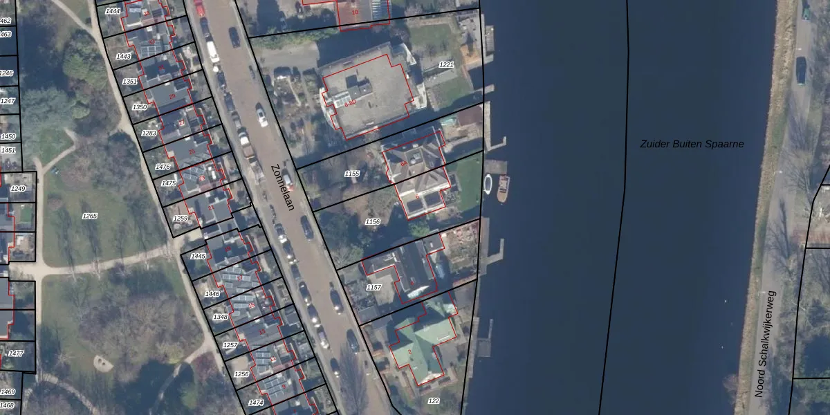 Zonnelaan 6 is gelegen op kadastraal perceel HLM02R1156. Deze kadastrale aanduiding is uniek en wordt gebruikt door het Kadaster om eigendomsrechten en andere zakelijke rechten vast te leggen. Het perceel maakt onderdeel uit van de kadastrale gemeente Haarlem.