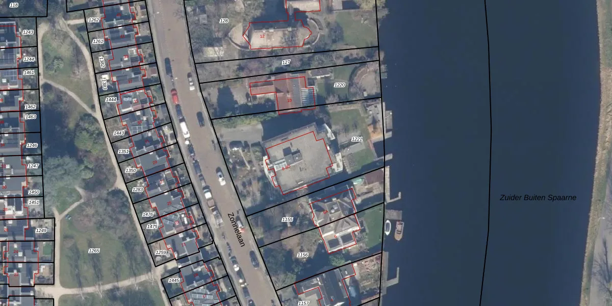 Het perceel waarop Zonnelaan 8-D staat heeft een oppervlakte van 1451 m². Dit is een zeer groot perceel. De perceeloppervlakte wordt geregistreerd door het Kadaster. Gedetailleerde informatie over de maten van dit perceel kunt u vinden in het rapport Kadastrale kaart met maatvoering van Zonnelaan 8-D.