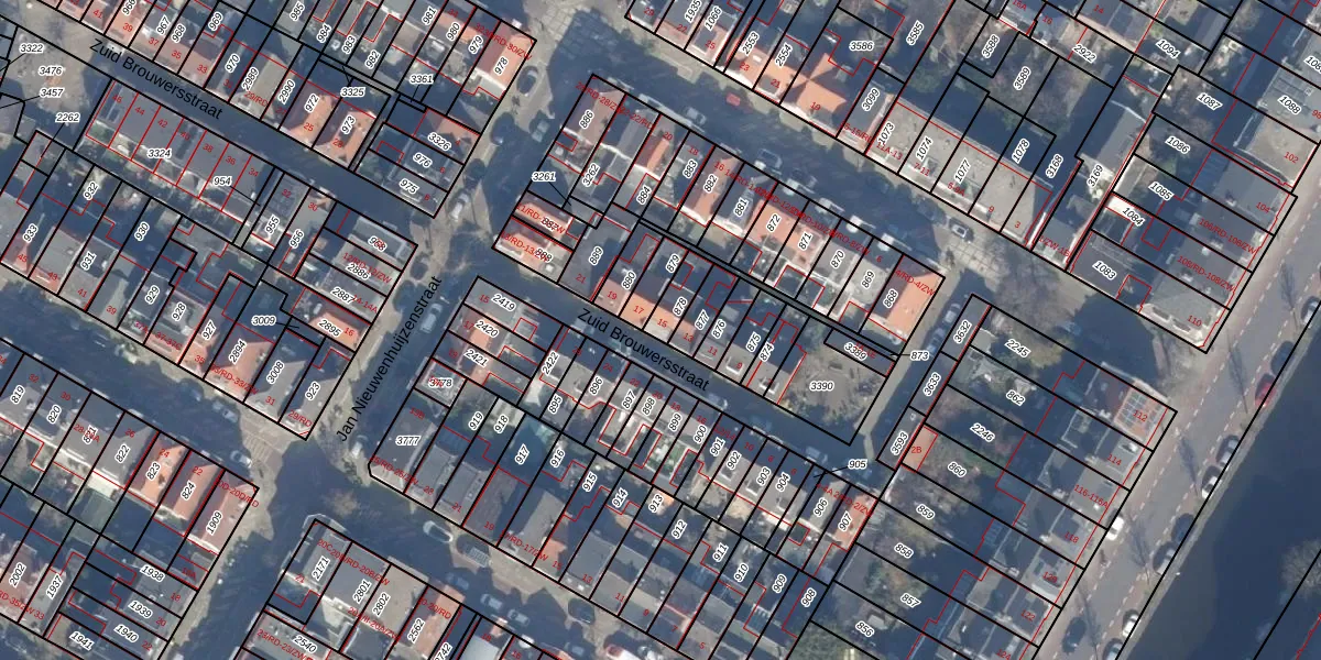 Gebruik de zoekbalk of klik op een perceel voor informatie over de adressen binnen dit perceel.