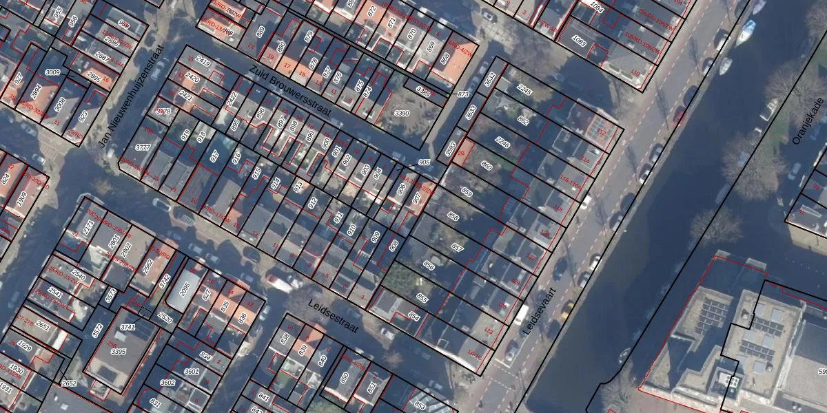 Het perceel waarop het adres ligt is HLM01-H-907. De afkorting 'HLM01' staat voor kadastrale gemeente Haarlem. Het perceel is kleiner dan gemiddeld in Haarlem. Het perceel is 68 m² groot, terwijl het gemiddelde ligt op 328,25 m². Het grootste perceel in de kadastrale gemeente is 13,9 ha. Het kleinste perceel heeft een oppervlakte van 0 m². Op het perceel zijn 2 adressen aanwezig. In de Basisregistratie Kadaster (BRK) werden de grenzen van het perceel geregistreerd op 12-10-2001.