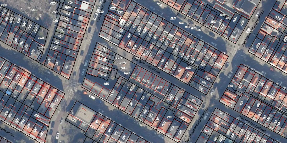 Het perceel waarop Zuid Brouwersstraat 44 staat heeft een oppervlakte van 364 m². Dit is een groot perceel. De perceeloppervlakte wordt geregistreerd door het Kadaster. Gedetailleerde informatie over de maten van dit perceel kunt u vinden in het rapport Kadastrale kaart met maatvoering van Zuid Brouwersstraat 44.