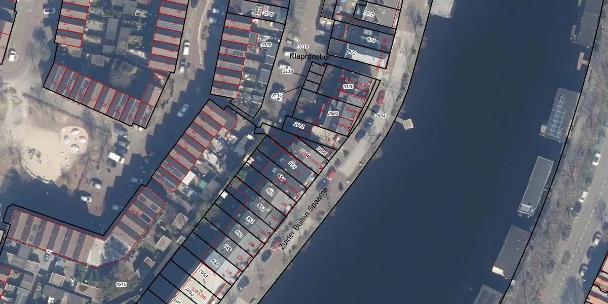 Zuider Buiten Spaarne 114-RD is gelegen op kadastraal perceel HLM01K2204. Deze kadastrale aanduiding is uniek en wordt gebruikt door het Kadaster om eigendomsrechten en andere zakelijke rechten vast te leggen. Het perceel maakt onderdeel uit van de kadastrale gemeente Haarlem.