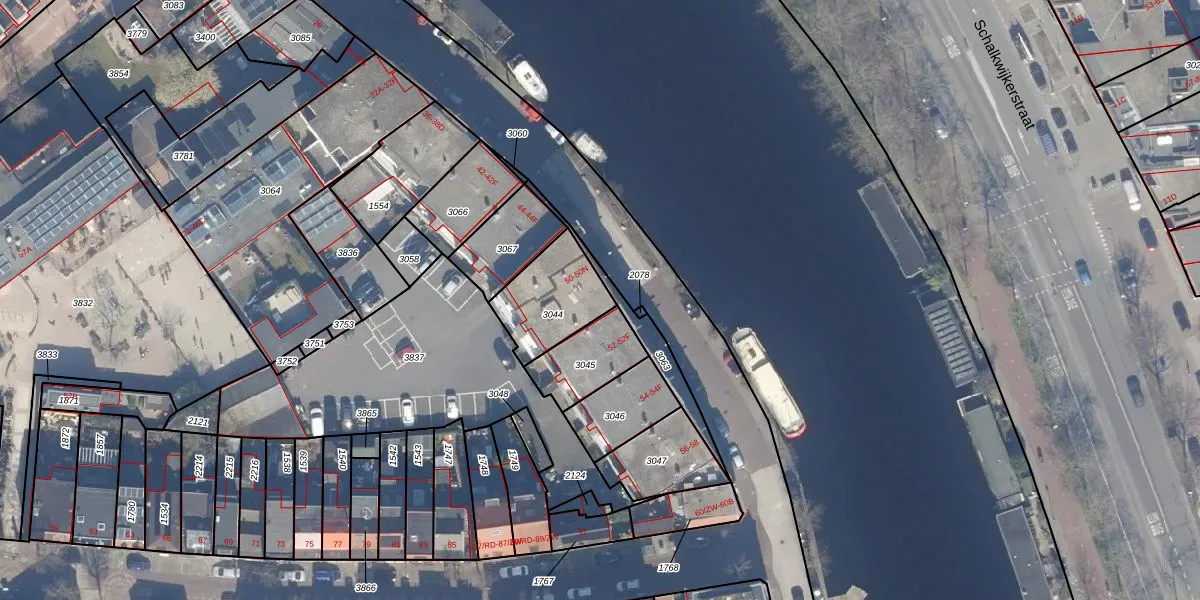 Het perceel waarop het adres ligt is HLM01-K-3044. De afkorting 'HLM01' staat voor kadastrale gemeente Haarlem. Het perceel is kleiner dan gemiddeld in Haarlem. Het perceel is 269 m² groot, terwijl het gemiddelde ligt op 328,33 m². De grootste perceeloppervlakte in de kadastrale gemeente is 13,9 ha. De kleinste oppervlakte bedraagt 0 m². Op het perceel zijn 13 adressen aanwezig. De huidige grenzen van het perceel zijn digitaal in de Basisregistratie Kadaster (BRK) geregistreerd op 01-08-2001.