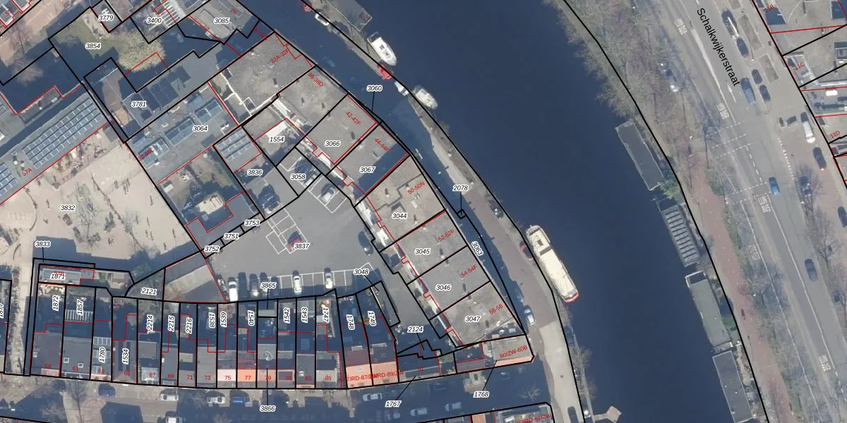 Het perceel waarop het adres ligt is HLM01-K-3044. De afkorting 'HLM01' staat voor kadastrale gemeente Haarlem. Het perceel is kleiner dan gemiddeld in Haarlem. Het perceel is 269 m² groot, terwijl het gemiddelde ligt op 328,33 m². De grootste perceeloppervlakte in de kadastrale gemeente is 13,9 ha. De kleinste oppervlakte bedraagt 0 m². Op het perceel liggen in totaal 13 adressen. De huidige grenzen van het perceel zijn digitaal in de Basisregistratie Kadaster (BRK) geregistreerd op 01-08-2001.