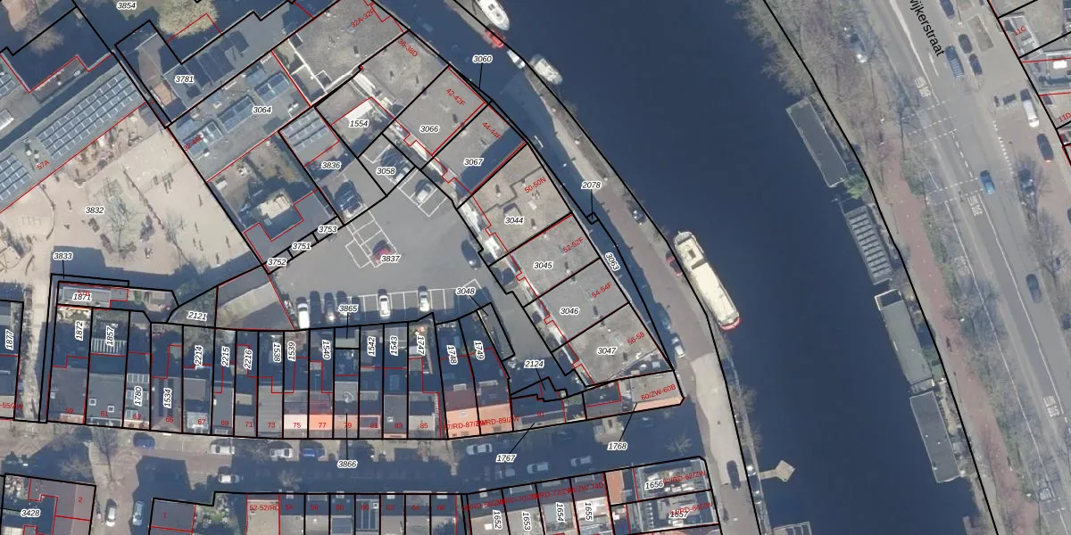 Het perceel waarop het adres ligt is HLM01-K-3045. De afkorting 'HLM01' staat voor kadastrale gemeente Haarlem. Het perceel is kleiner dan gemiddeld in Haarlem. Het perceel is 187 m² groot, terwijl het gemiddelde ligt op 328,33 m². De grootste perceeloppervlakte in de kadastrale gemeente is 13,9 ha. De kleinste oppervlakte bedraagt 0 m². Er zijn 7 adressen aanwezig op het perceel. In de Basisregistratie Kadaster (BRK) werden de grenzen van het perceel geregistreerd op 01-08-2001.