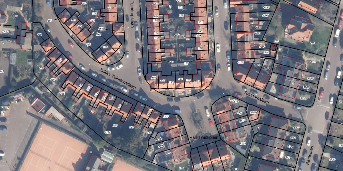 Gebruik de zoekbalk of klik op een perceel voor informatie over de adressen binnen dit perceel.