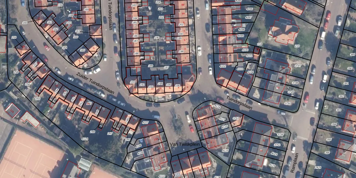 Zuider Tuindorpslaan 4 is gelegen op kadastraal perceel HLM02T196. Deze kadastrale aanduiding is uniek en wordt gebruikt door het Kadaster om eigendomsrechten en andere zakelijke rechten vast te leggen. Het perceel maakt onderdeel uit van de kadastrale gemeente Haarlem.