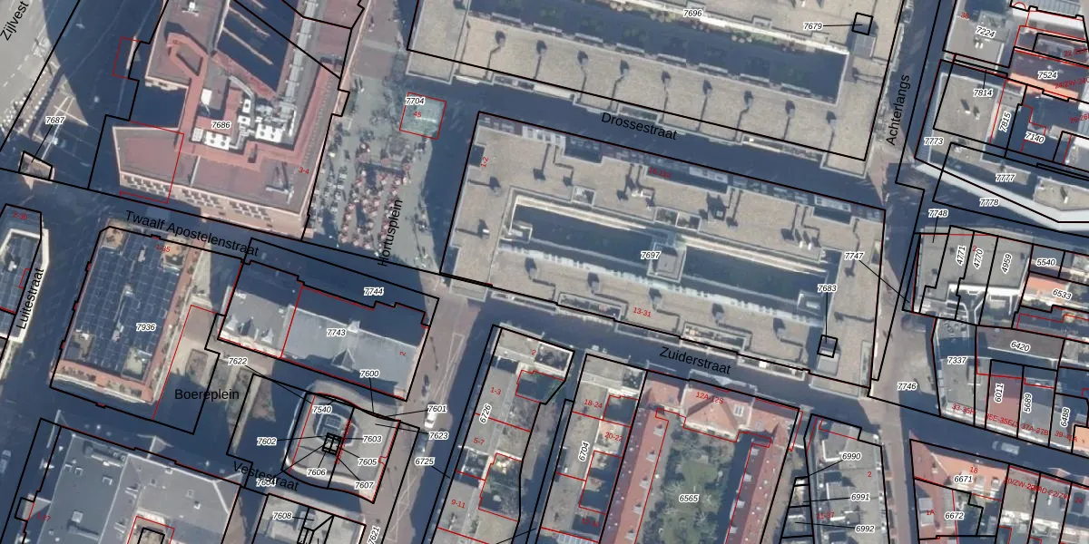 Het perceel waarop Zuiderstraat 13 staat heeft een oppervlakte van 2476 m². Dit is een zeer groot perceel. De perceeloppervlakte wordt geregistreerd door het Kadaster. Gedetailleerde informatie over de maten van dit perceel kunt u vinden in het rapport Kadastrale kaart met maatvoering van Zuiderstraat 13.