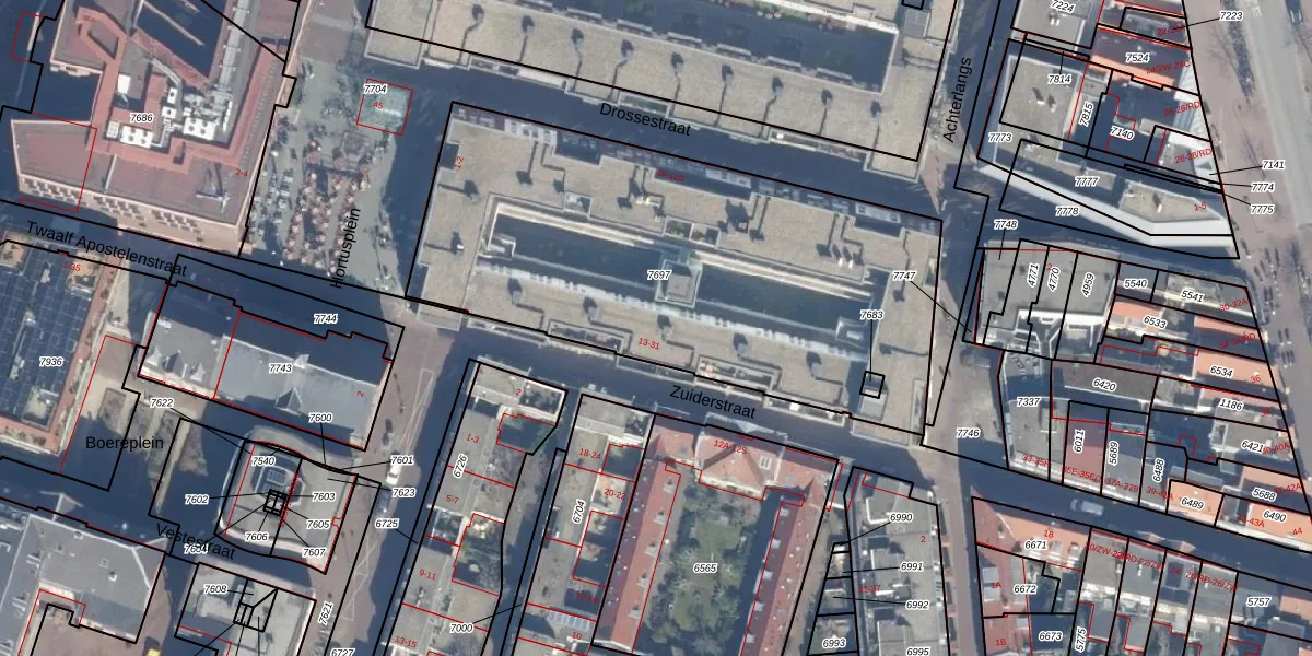 Het perceel waarop Zuiderstraat 21 staat heeft een oppervlakte van 2476 m². Dit is een zeer groot perceel. De perceeloppervlakte wordt geregistreerd door het Kadaster. Gedetailleerde informatie over de maten van dit perceel kunt u vinden in het rapport Kadastrale kaart met maatvoering van Zuiderstraat 21.