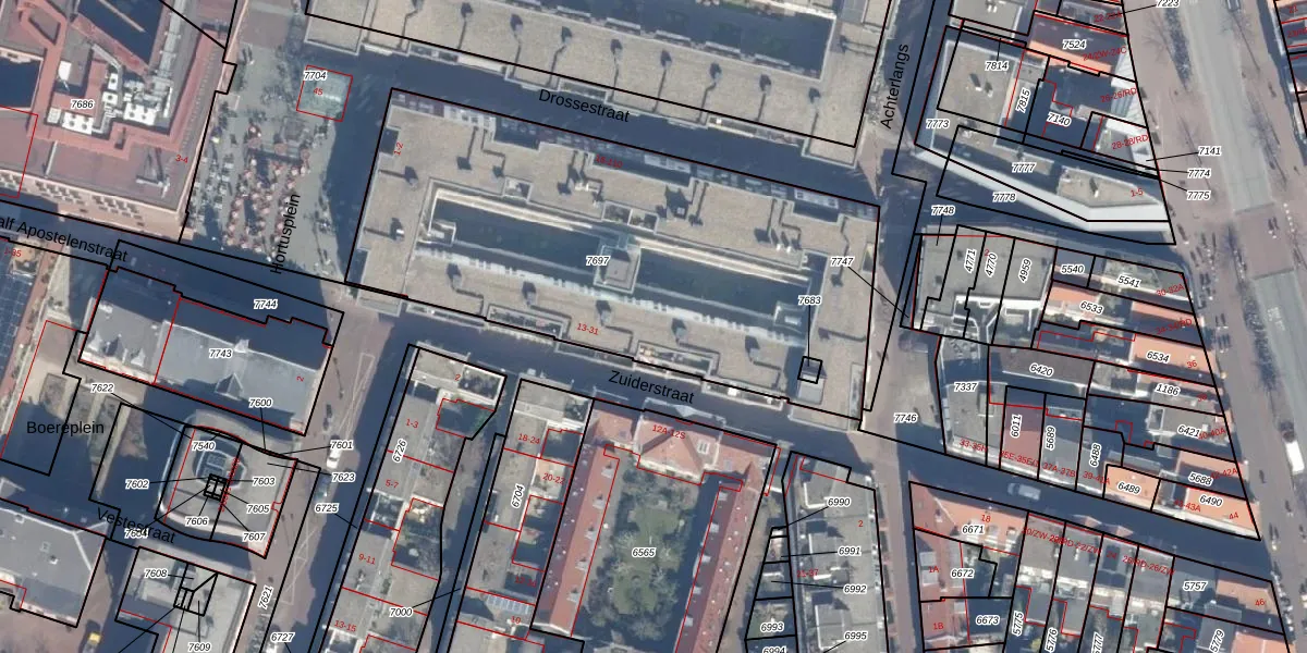 Het perceel waarop Zuiderstraat 25 staat heeft een oppervlakte van 2476 m². Dit is een zeer groot perceel. De perceeloppervlakte wordt geregistreerd door het Kadaster. Gedetailleerde informatie over de maten van dit perceel kunt u vinden in het rapport Kadastrale kaart met maatvoering van Zuiderstraat 25.