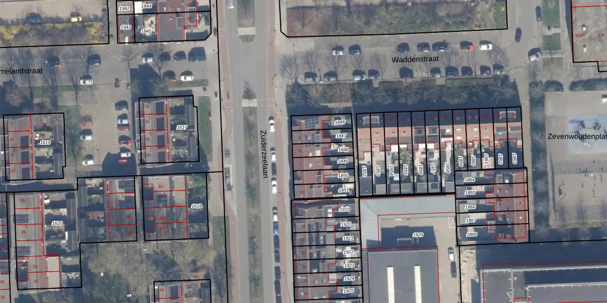 Gebruik de zoekbalk of klik op een perceel voor informatie over de adressen binnen dit perceel.